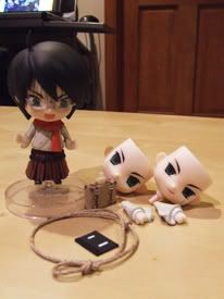 And last but certainly not least is a figure that will not leave you in despair. The Nendoroid line decided to make a Nozomu Itoshiki figure which, while an unusual choice, is delightfully appreciated. My kinship to the despair teacher made me rush out to buy this. He has three difference faces, two different sets of arms, a scarf, art-book, and his suicide travel suitcase. There is also a alternate piece of hair so you can but the little noose that comes with him around his neck. You can have him in his “I am in despair” look which is really all you really need. Everything else is merely icing on the cake.