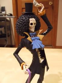 It time for more the part of Ongoing Investigations were I show you what toys I bought. First up is new two newest Portraits of Pirates. The set seems to have back in black as the theme. The first is the newest member of the Straw Hat Pirates, Brook. He is a skeleton, with an Afro, a top hat, and a suit who plays the violin. If this combination of words does not make you want a figure of him, I am not sure what I can say to sell you on it. He comes with a sword cane, a tea cup, and his tone dial. Also you can also pop open the little compartment in his skull and keep the tone dial in there which I find an amusing attention to detail. In contrast we have Rob Lucci. Another man in a black suit with a top hat but with a completely different tone to the lighthearted Brook. Rob also comes with his pigeon Hattori and his mask. I really think that as the Portrait of Pirates series has gone on they have really come into their own. While Rob is not as complex as some of the latest entries into the series he is well done and really captures the essence of the character. Brook is complex and customizable for a static pose figure. I am a little surprised that they decided to make Rob instead of the more popular Kaku.