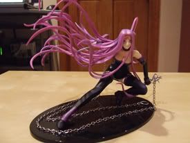 Next up is the always sexy Rider from Fate/Stay Night. I have always wanted the original Good Smile Rider figure but it is somewhat of a collector item making it a little too expensive for my tastes. Contrastly, Maid Rider and Swimsuit Rider are little too cheesecake for my tastes. Not that Rider’s actual outfit is not cheesecake but I am willing to accept that because it’s her standard uniform. Yes, that is a bizarre set of somewhat contradictory semantics but a set of semantics I can live with. When I saw the eb Craft version of the classic Rider I went out and pre-ordered it. While I like the pose on the Good Smile figure a little bit more, this one is in a more dynamic pose. She has removable mask and her iron nails as well.